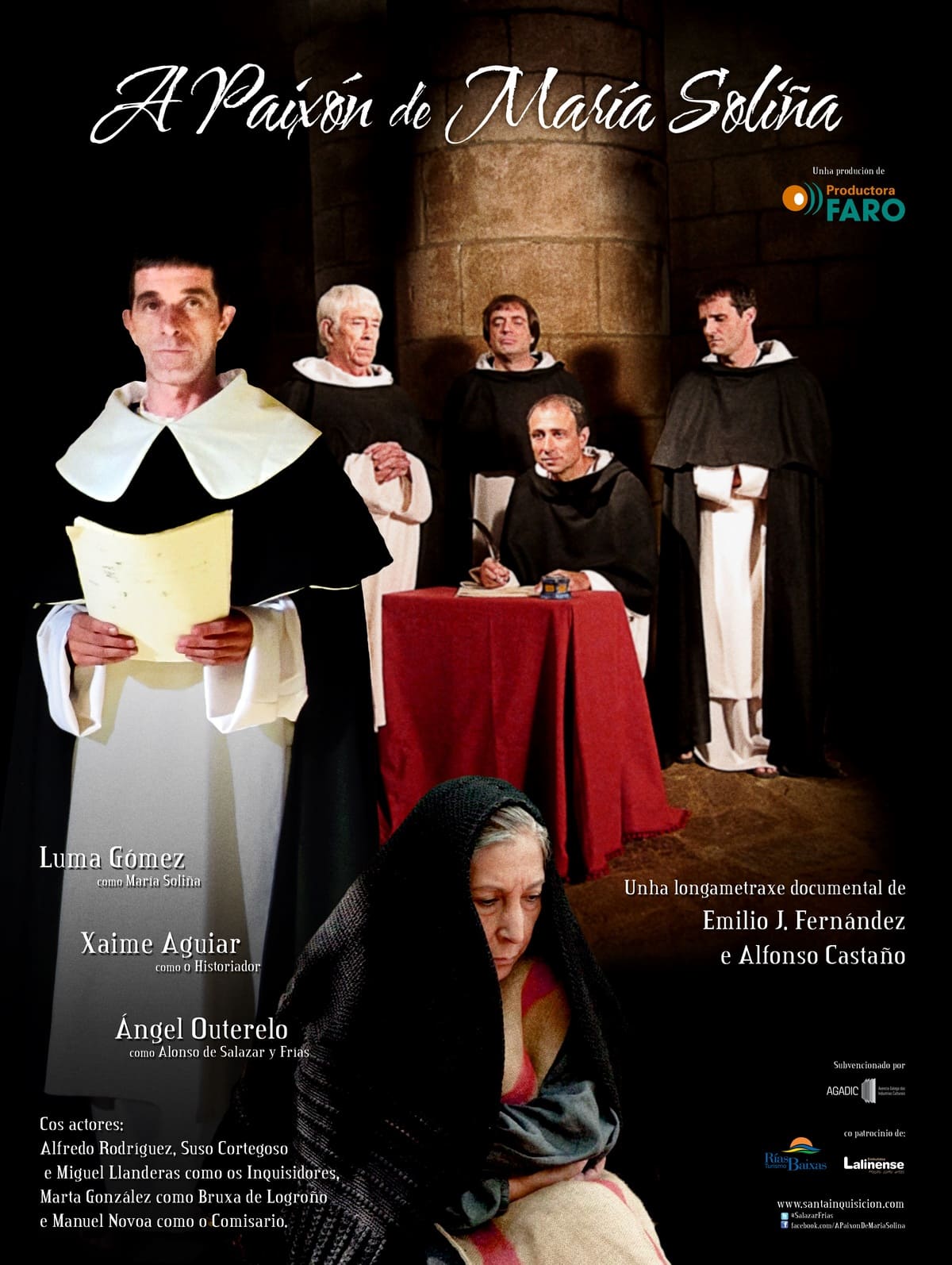 ‘La Pasión de María Soliña’ es un largometraje documental y de ficción histórica escrito y dirigido por Emilio J. Fernández y Alfonso Castaño sobre una de las figuras más representativas de Galicia: María Soliña (Luma Gómez) y el Tribunal de la Inquisición Española. La película es una crónica del apresamiento y del proceso inquisitorial al que fue sometida bajo la acusación de brujería en 1621.